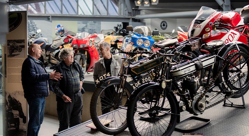 From the early days of motor sport to urban culture, see motorcycles displayed with unique backdrops, each giving a hint to their cultural context.