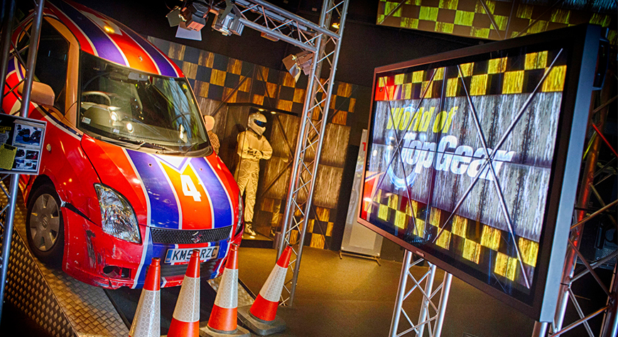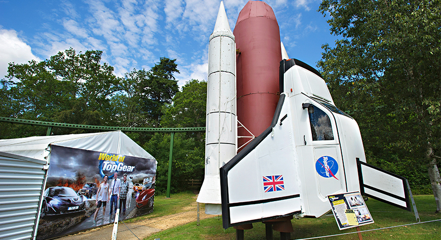 The World of Top Gear features vehicles from every era of the Top Gear challenges, including favourites like the Reliant Robin Space Shuttle and the Dampervan.