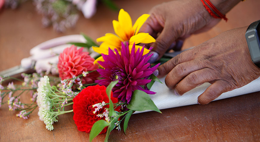 Learn the art of wreath-making – create and take home a stunning spring design for your door, with expert floral designer Shilpa Reddy.