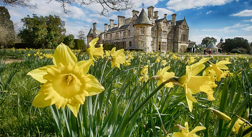 The Palace House Wilderness Garden is carpeted with a colourful mass of snowdrops, crocuses, daffodils and fritillaria.