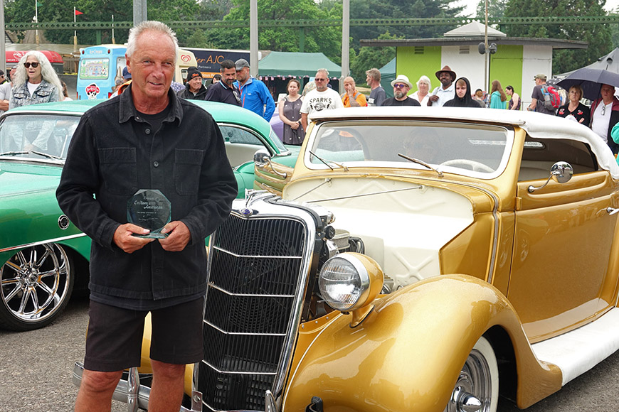 Presented by the show ambassador, The Andy Saunders Award went to Teri Smith from Christchurch for his 1935 Ford Cabriolet. As he handed Teri his trophy, Andy said: “The reason this car is so important in the custom scene, is that these wide-bodied Fords, brought out in 1935, were modified to become the first custom cars, whereas everything built up to 1934 became hot rods.” Teri said: “I’m amazed to have won this award. I’ve had it five years, and it has had a complete rebuild. It’s something different, our own creation.”