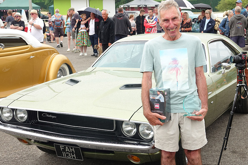 The Solent Renegades’ Choice was presented by club representatives Dan and Malcolm to Alan Fee from Cadnam for his 1970 Dodge Challenger. Malcolm said: “It was a nightmare choosing a winner. But when we saw this car, we just stopped in our tracks, and couldn’t stop looking at it.” Alan said: “I’m surprised to have won! I’ve done a lot to the car in the time I’ve had it.” Dan and Malcolm presented Alan with a trophy and an Autoglym prize.