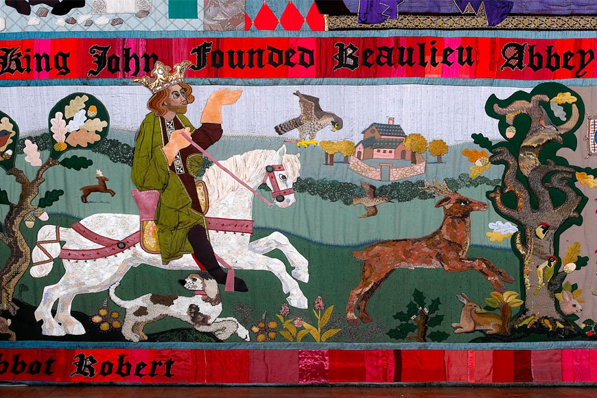 The was followed by Belinda’s largest commission, a series of seven embroidered wall hangings, recounting the story of Beaulieu Abbey from its foundation in 1204 to its dissolution in 1538. The hangings, which took seven years to complete, can still be seen in the Abbey Domus on a visit to Beaulieu.