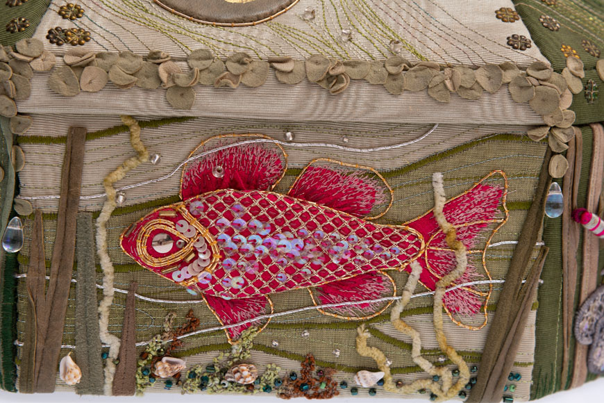 Ornate boxes, cushions, wall hangings, picture frames, drawings and handbags will add detail to the exhibition, while family fancy dress costumes designed and made for parties will form bold centrepieces.