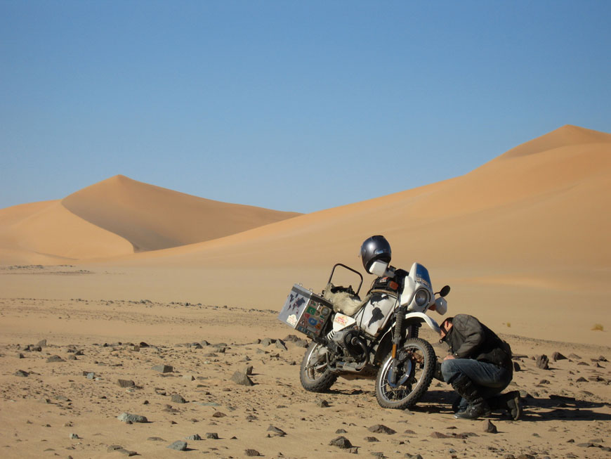 Putting their medical careers on hold and riding off into the sunset on their trusty motorcycle, nicknamed The Bear, the intrepid couple covered 100,000 miles unsupported as they travelled across 64 countries and 6 continents. Over the mountains of the Andes, across the deserts of Africa, deep into the jungles of Indochina and beyond the Arctic Circle, their four-year trek became one of the longest journeys undertaken by a couple on one motorcycle.