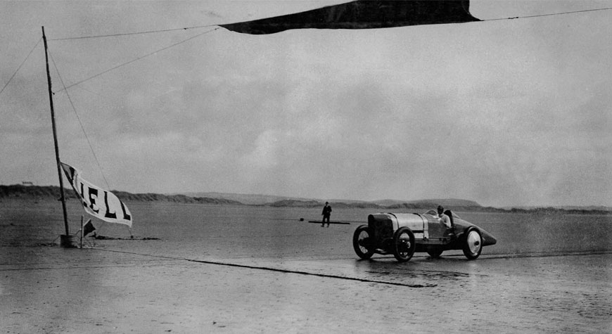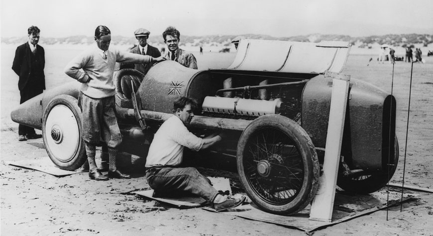 The Sunbeam, renamed Blue Bird by Campbell, holds three World Land Speed Records, the first achieved by Kenelm Lee Guinness at Brooklands in 1922 with a speed of 133.75mph. Campbell then purchased the car, had it painted in his distinctive colour scheme and in September 1924 achieved a new record speed of 146.16mph at Pendine, raising it the following year to 150.76mph.
