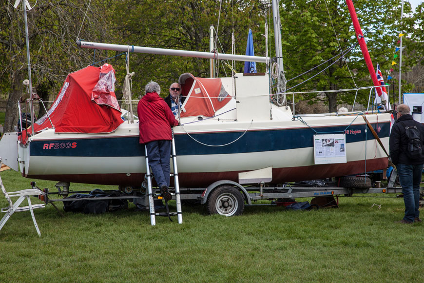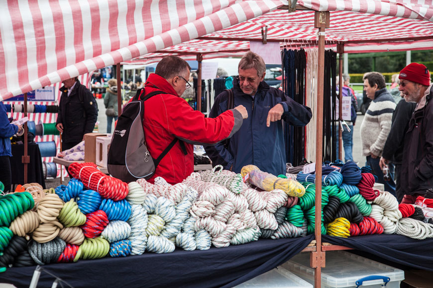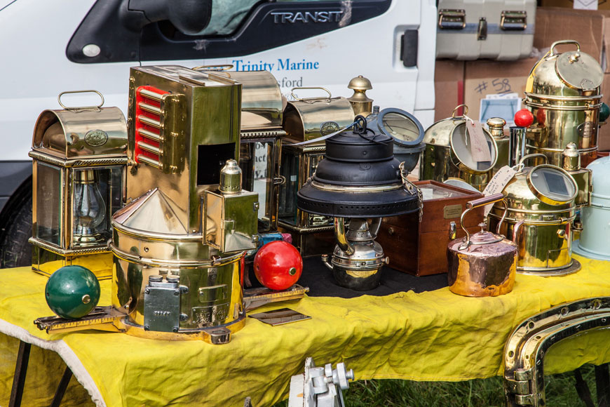 The event fields were bustling with activity, as bargain hunters searched through boating curiosities including anchors, chains, rope, fenders, outboard engines, sails and clothing, watched demonstrations and visited displays of classic boats.