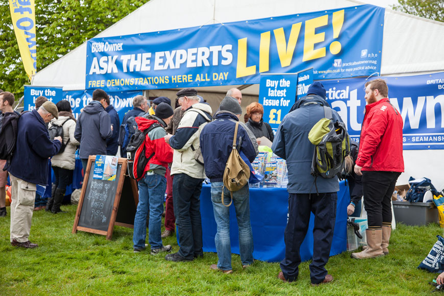 Visitors crowded into the Ask the Experts Live feature, run by Boatjumble sponsors Practical Boat Owner. Marine industry experts shared their specialist knowledge, answered boating questions and gave demonstrations on everything from onboard cooking to raft inflation.