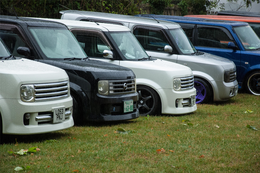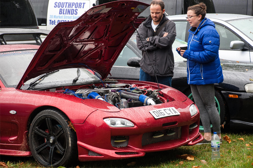 Other Japanese cars on show ranged from Mitsubishi Evolution sports saloons and Nissan Cubes and Figaros, to classics such as a 1973 Toyota Crown 2600 and a first generation Mazda RX-7 in yellow and red racing colours.