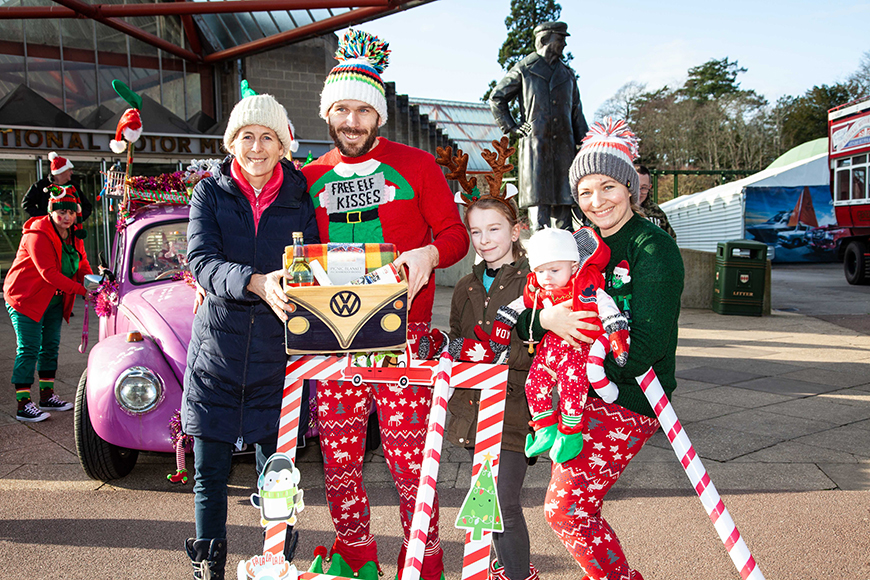 Nearly 250 rally participants with 60 children lined up in the decorated VW campers as the Hon. Mary Montagu-Scott waved the chequered flag to start the New Forest VW Santa Run in the grounds of the National Motor Museum on Sunday 1st December.