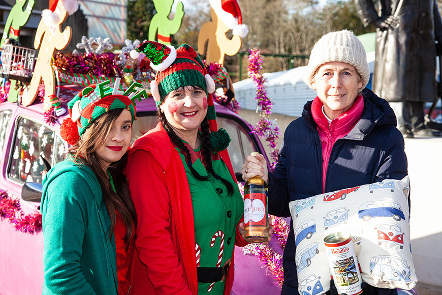 Lord Montagu’s sister Mary Montagu-Scott waved off a festive convoy of over 100 classic and custom VWs as they left Beaulieu to deliver Christmas presents to youngsters at the Piam Brown unit at Southampton General Hospital.
