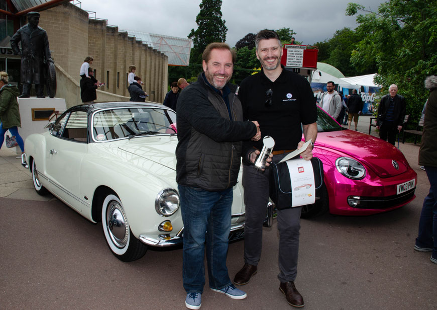 At the Breeze Volkswagen Commercial Vehicles-sponsored Simply VW event on Saturday, the People’s Choice Award was presented to Russell Payton, from Newbury, with his restored 1964 Karmann Ghia. Runners-up were Sarah Walkey, from Portsmouth, with her pink wrapped 2013 Beetle and Brandon Hayes, from Wimborne, with his custom-style 2000 Beetle. They were both presented with Autoglym prizes by Stuart Hack, the sponsor’s Head of Business.