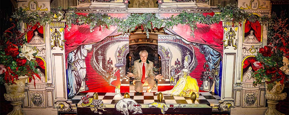 The first A Palace House Christmas is now open for visits to Beaulieu with a 14ft pantomime dame, fantastical mummer creatures, life-size Pollock theatre and theatrical installations to tell the magical story of pantomime.