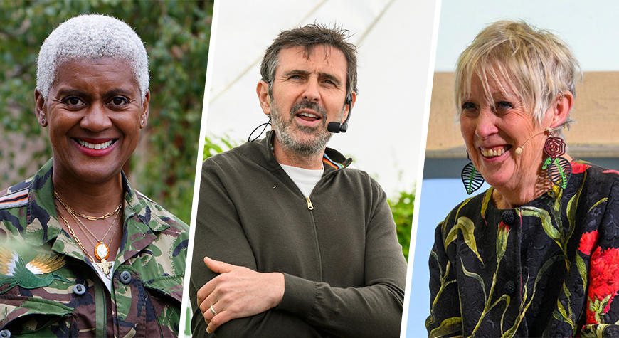 Arit Anderson, Adam Frost and Carol Klein at BBC Gardeners' World Spring Fair