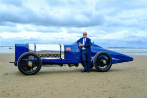 Speaking at Pendine, Doug Hill, the National Motor Museum’s Chief Engineer and Museum Manager said, “The Sunbeam 350hp is an 18.4 litre V12 semi aero engine monster. It was the fastest car in the world 100 years ago. Campbell was up and coming race driver and he realized that there was a lot of endeavour and glory to be had in being the fastest man on the planet, and so he bought the Sunbeam 350hp from the Sunbeam company. It had already won the land speed record at Brooklands, and so Malcolm thought, with his team of engineers, he could get the car to go faster. He therefore bought it, raced it, sprinted it, and used hill climbs, and then he took it to Pendine in September 1924 and took it to over 146 mph. He knew however that he could squeeze some more out of it. Big, courageous guy that he was, he did just that and on 21 July 1925 achieved the best run over the mile of 152.833 mph, and on average raised the World Land Speed Record to 150.766 mph, the first time a car had exceeded 150 mph.”
