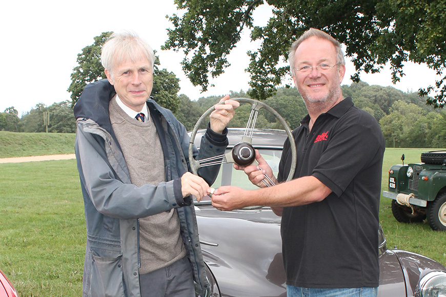 Maintaining the unbroken Beaulieu autojumble record of trading, which has happened every year since 1967 when the event first took place, Lord Montagu purchased a 1950s Morris Minor steering wheel from Practical Classics Editor Danny Hopkins for the bargain price of £1 – both being sure to sanitise their hands and take the necessary precautions to ensure a safe exchange.