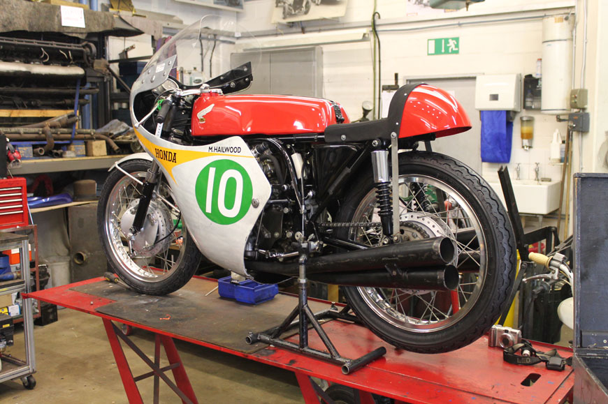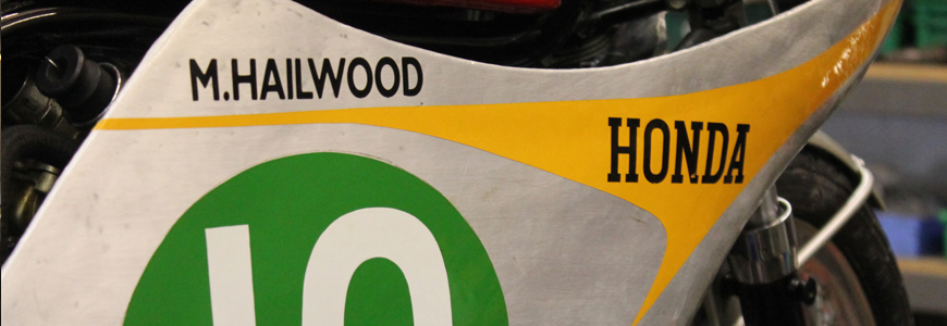 Although usually on show in the National Motor Museum’s Motorcycle Story display, the Honda took part in a special event. To celebrate 65 years of motorcycle racing at Castle Combe, a tribute parade was held at the race circuit on Sunday 3rd July, with a number of famous bikes and racers from the past taking part. The museum’s Honda joined the parade, ridden by former Grand Prix motorcycle racer and one-time Honda factory team rider Stuart Graham.