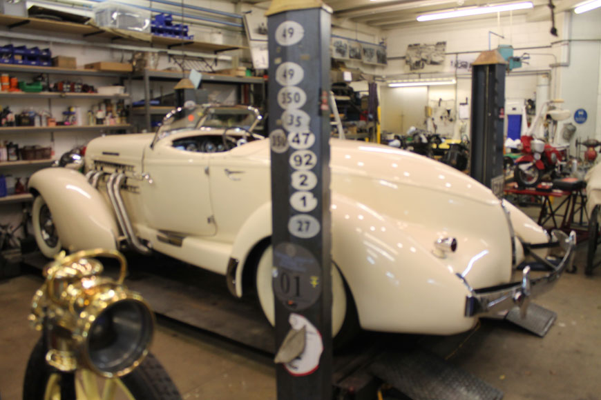 This month, the 1935 Auburn has been prepared for a continental rally, while an unusual electric vehicle has gone on display.