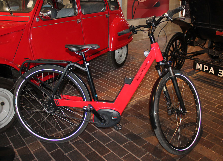 A new example of electric-powered transport has now also gone on display, in the form of a Riese and Müller Nevo Nuvinci electric bike. Offering assistance from an electric motor, which varies according to how hard the rider is pedalling, electric bikes are becoming increasingly popular.