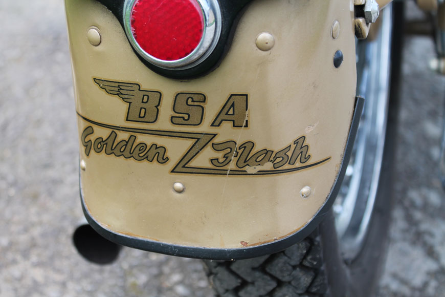 Living up to its name, this Golden Flash looks stunning with its gold paintwork, but not all examples of this popular model were painted this colour; black paintwork was standard, while oddly the gold colour option was referred to as ‘beige’ in period BSA advertising.