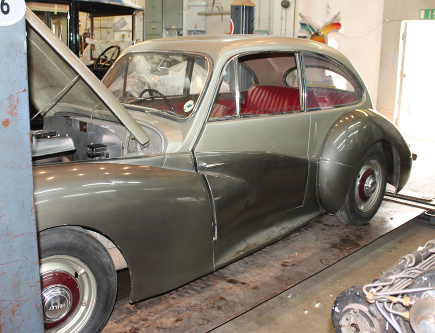 Almost all of the National Motor Museum’s 280 vehicles are on display for Beaulieu visitors to see. However, there are one or two cars tucked away, waiting to go on show again at a later date. The 1947 Healey Elliot 2.4-litre is one such automotive treasure that came into the museum workshop for light recommissioning work, after being safely stored for a number of years.