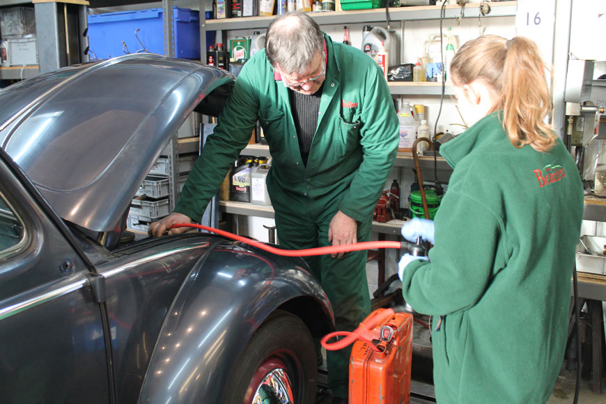 Once deteriorated fuel lines have been replaced and a new battery and petrol added, the Beetle’s rugged 1131cc flat-four engine fired up without difficulty. The brakes were serviced and the rest of the car was thoroughly inspected, before it was taken on a triumphant test run around the Beaulieu grounds. With a clean bill of health, the Beetle is now back on display in the museum.