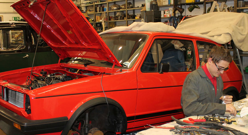 More than three decades the junior of the Cooper 500 is a new arrival in the workshop, a Volkswagen Golf GTi.