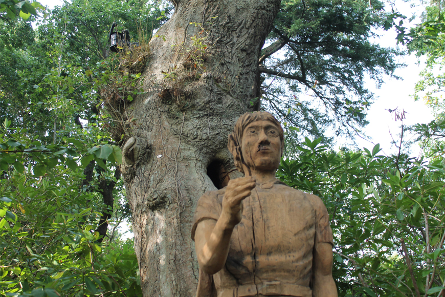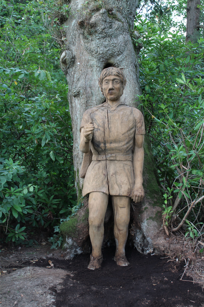 With pointy ears, travelling cape and hand outstretched to greet visitors, this mischievous fellow looks as though he has stepped straight out of a storybook and is a perfectly formed wooden recreation of one of the forest’s most secretive creatures.
