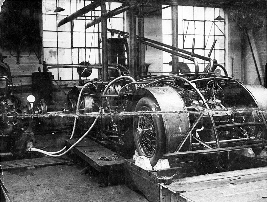 Minus its body panels, the 1927 Sunbeam 1000hp was extensively tested during its original build