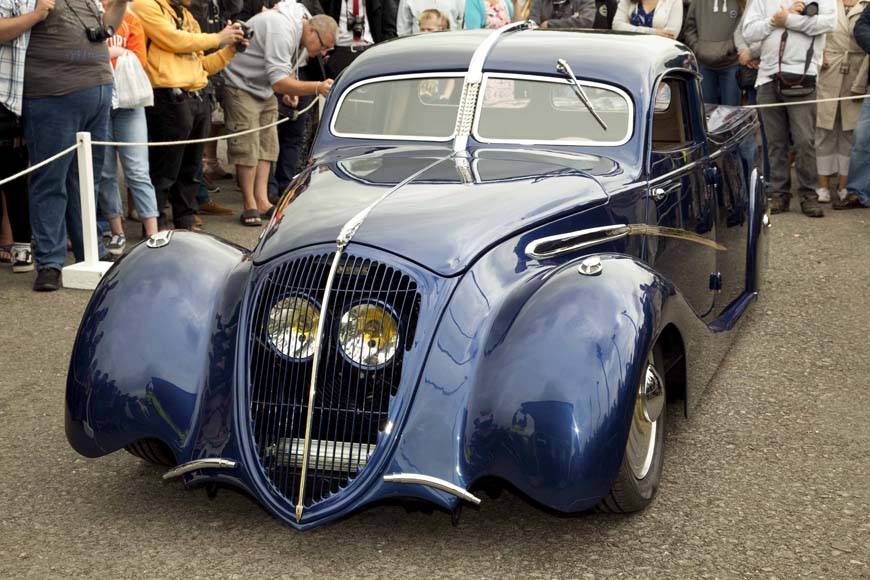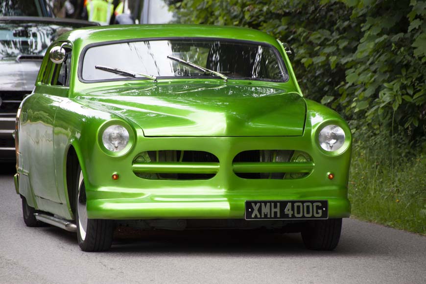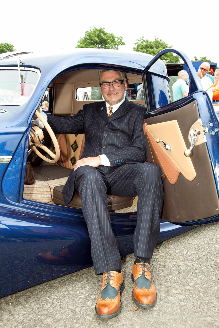 To launch Beaulieu’s summer exhibition The Art of Kustom, Andy drove Metropolis out of a car transporter for the big reveal, to cheers and applause from custom car fans. The art deco-style 1939 Peugeot 202 pick-up was discovered as a rusty wreck in a field in France and its transformation was completed with just hours to spare before its public debut at Sunday’s Father’s Day show.
