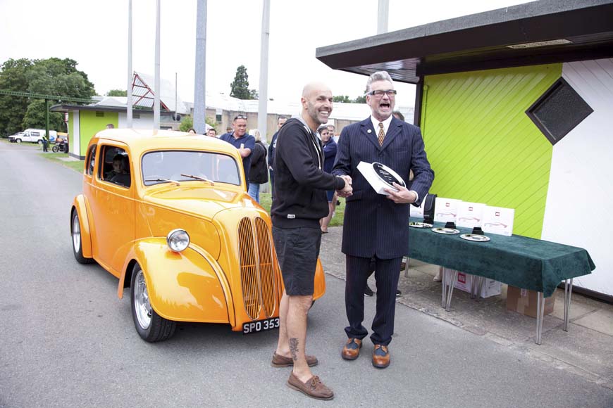 Andy Saunders presented the Hot Rod & Custom Drive-In Day winners’ trophies and Autoglym valeting packs. The Best Custom award went to Richard James, from Stroud in Gloucestershire, for his immaculate 1941 Ford. The Best Hot Rod was the bright orange 1955 Ford Popular owned by Dave Owen, from Bournemouth, with a 450bhp Chevrolet V8 under its bonnet.