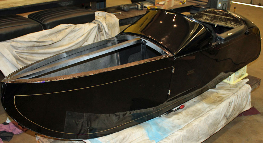 Meanwhile, work has been progressing on the museum’s 1936 Brough Superior 11.50 Special. While restoration work on the motorcycle itself nears completion, workshop engineer Mike Gillett has been busy reassembling its Alpine Grand Sports Sidecar. The sidecar body, which has returned to the workshop after being painstakingly repainted, is now being reassembled, although chroming work is required to the tubular frame which the body sits on. Unusually, this frame also incorporates a tube across the nose of the sidecar, which also doubles as a reserve fuel tank.