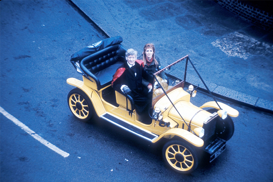Tom Baker drove Bessie in his first episode in 1974, using the car to help defeat a giant robot. After a hiatus, the car reappeared in 1983 in The Five Doctors, when Peter Davison’s Doctor encountered four other versions of himself. Dusted down for another adventure with Sylvester McCoy’s Doctor in Battlefield in 1989, Bessie’s last hurrah on the small screen came in 1993 with the charity special episode Dimensions in Time.