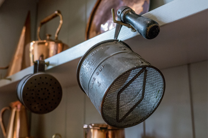 The kitchen has been lined with shelves bearing copper pans and utensils from the Victorian era. Most striking is the massive replica dresser which has been made by Beaulieu’s skilled craftsmen after carefully examining old photographs.
