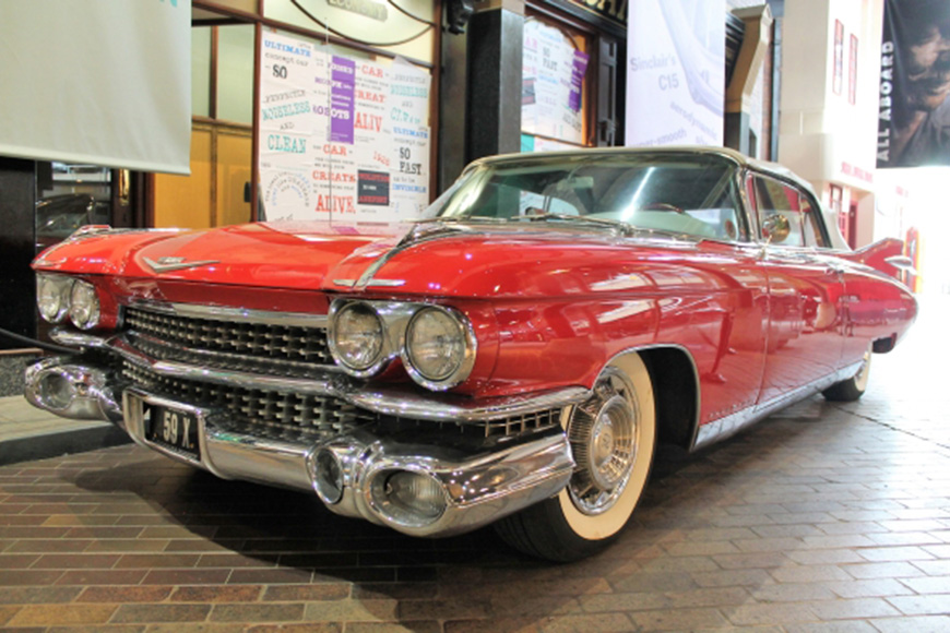 - Cadillac Eldorado Biarritz (1959) – an eye-catching luxury American car with distinctive futuristic looking styling, reflective of the post-war period of the space race of rockets and astronauts.