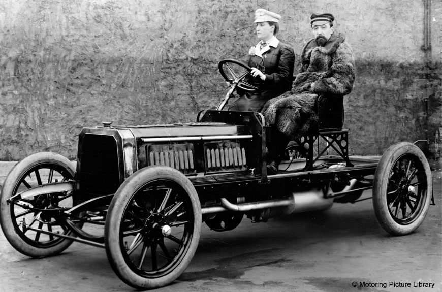 In 1903, Camille was offered the chance to drive a 5.7 works 30hp De Dietrich in the Paris-Madrid race, an early motor racing experiment. Setting off in 29th place, all started well – how those gallant Frenchmen smiled and applauded her, raising their hats as the impressive sight of Camille, sitting bolt upright behind the wheel drove by! Incidentally, the seating position was due to the corsetry that was very much ‘a la mode’ – imagine, it would have been impossible to have a somewhat ‘relaxed air’ about you with all that strait-lacing and boning enveloping your upper body! Dorothy Levitt would certainly have approved as, whilst writing her book, The Woman and the Car which was published in 1909 she wrote disapprovingly about any woman who was seen ‘lolling behind the wheel!’