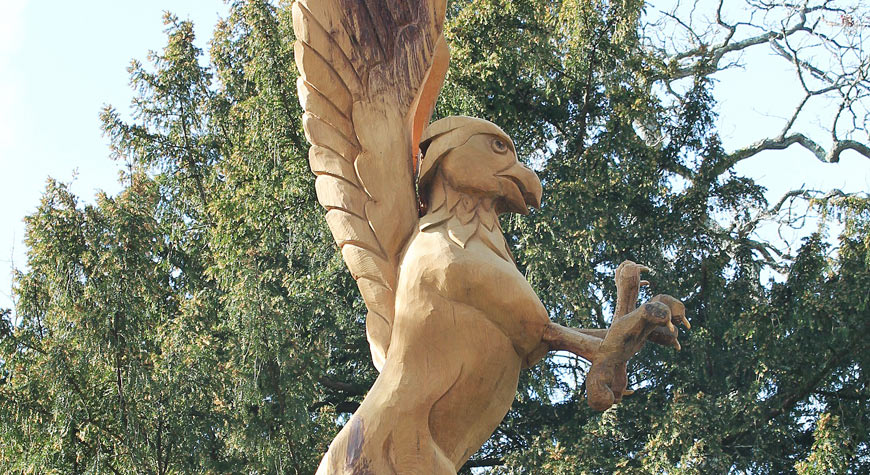 We have a brand new tree-carving to add to our collection of giant mythical creatures. The ‘green man’ carving was completed at the beginning of the school holidays but he is name-less…